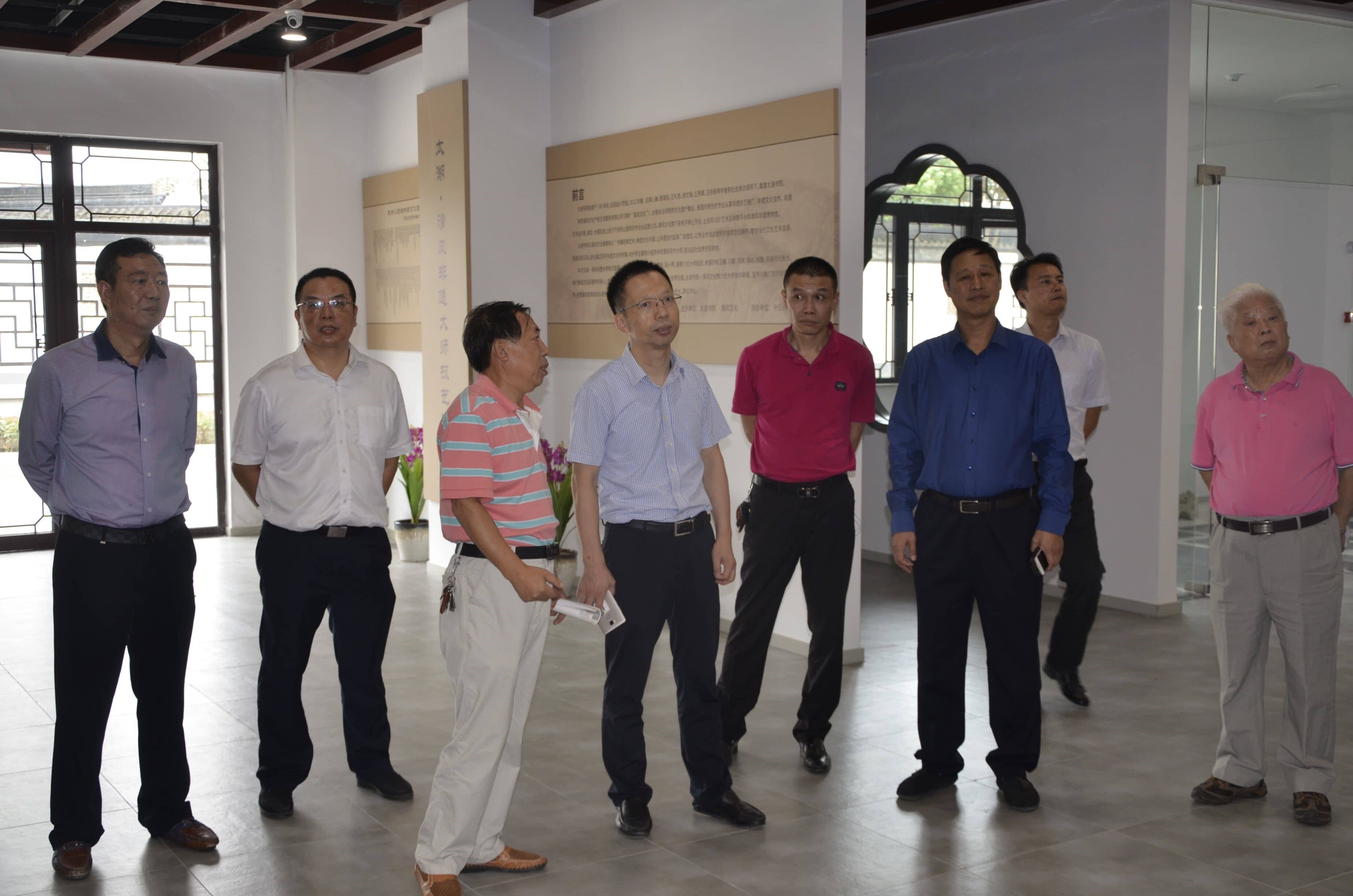 ??2017年10月10日下午14時許,蘇州市吳中區胥口鎮黨委書記陸建明、黨政辦主任龔健對胥口鎮所屬香山工坊、太湖書院、名人書畫街等文化產業基地進行考察調研。
