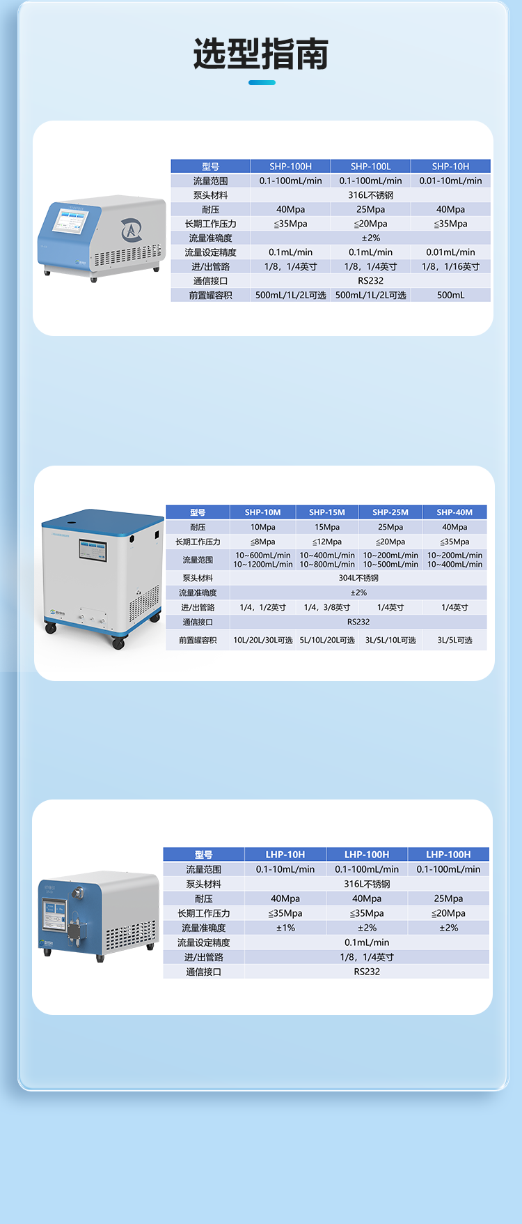 壓力:0-20MPa,流速:0-100ml/min,500ml內(nèi)置前置制 冷罐,7寸觸摸屏操作,壓力上限設(shè)置,恒流恒壓輸送模 式